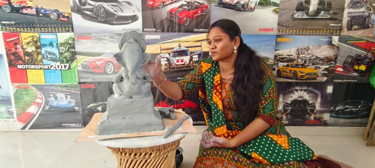 આ કારણસર તેઓ જાતે જ ઇકોફ્રેન્ડલી મૂર્તિઓ બનાવે છે અને અન્ય લોકોને પણ એ જ માર્ગ અપનાવવાનો સંદેશ આપે છે. ચૈતાલીબેન કહે છે, પ્રથમ વખત પરિવારે મૂર્તિ ઘરે બનાવવાનું કહ્યું ત્યારે અનુભવ નહોતો. સાઢું માટી ભીની કરી સુકવીને મૂર્તિ બનાવી, ત્યારથી દર વર્ષે ઘર માટે જાતે મૂર્તિ બનાવું છું.