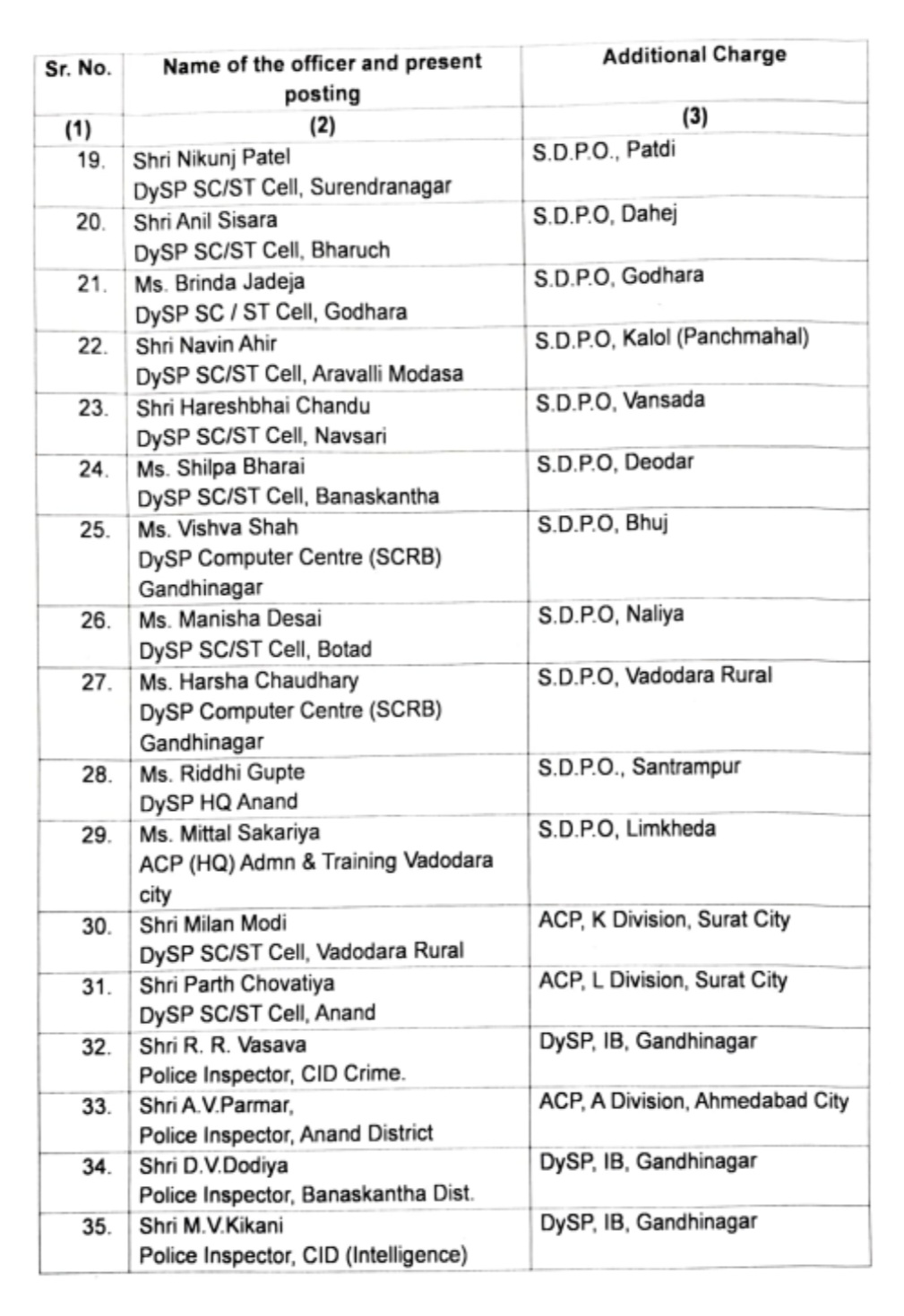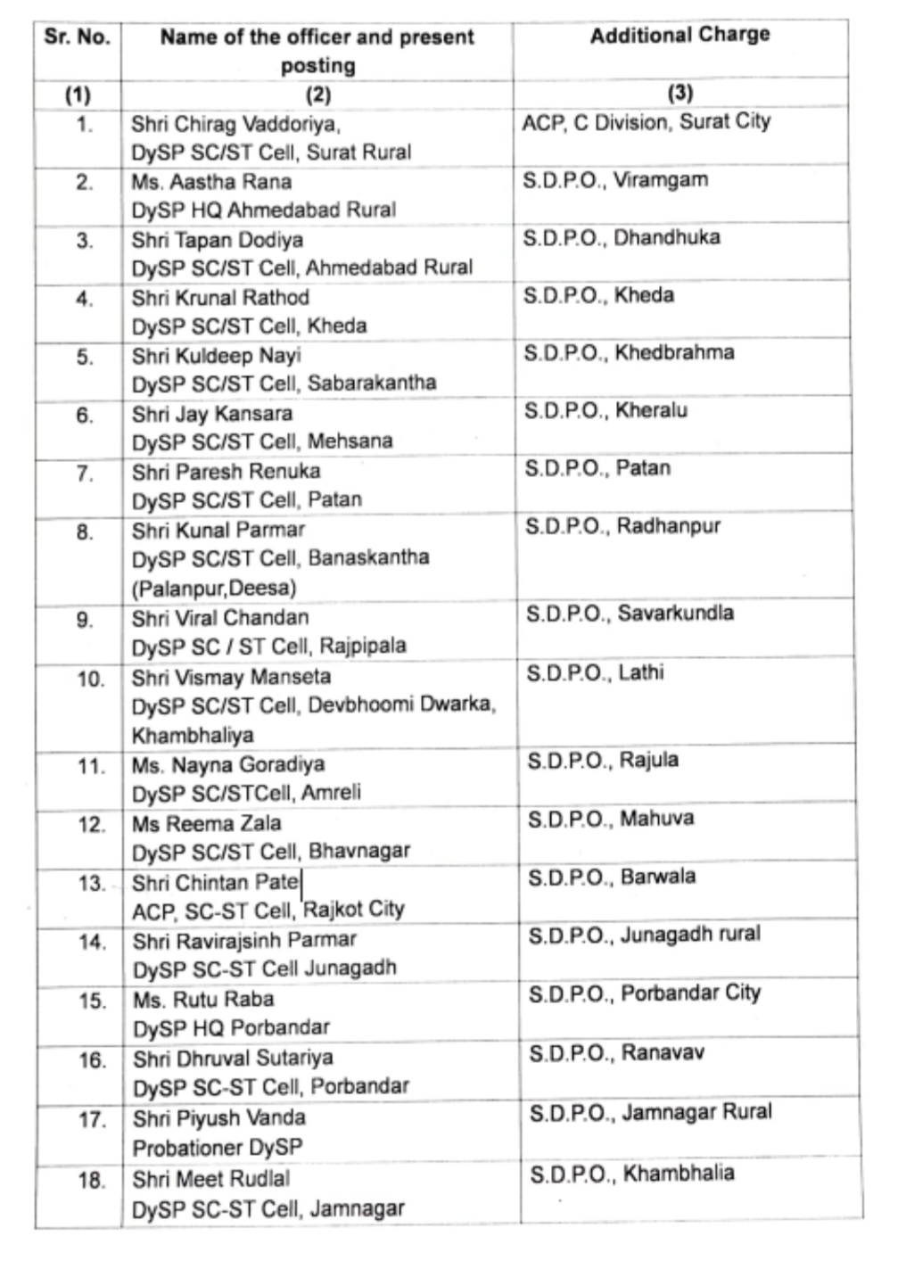 આ બધા નામો અને પોસ્ટિંગ લીસ્ટમાં સ્પષ્ટ રીતે દર્શાવવામાં આવ્યા છે.