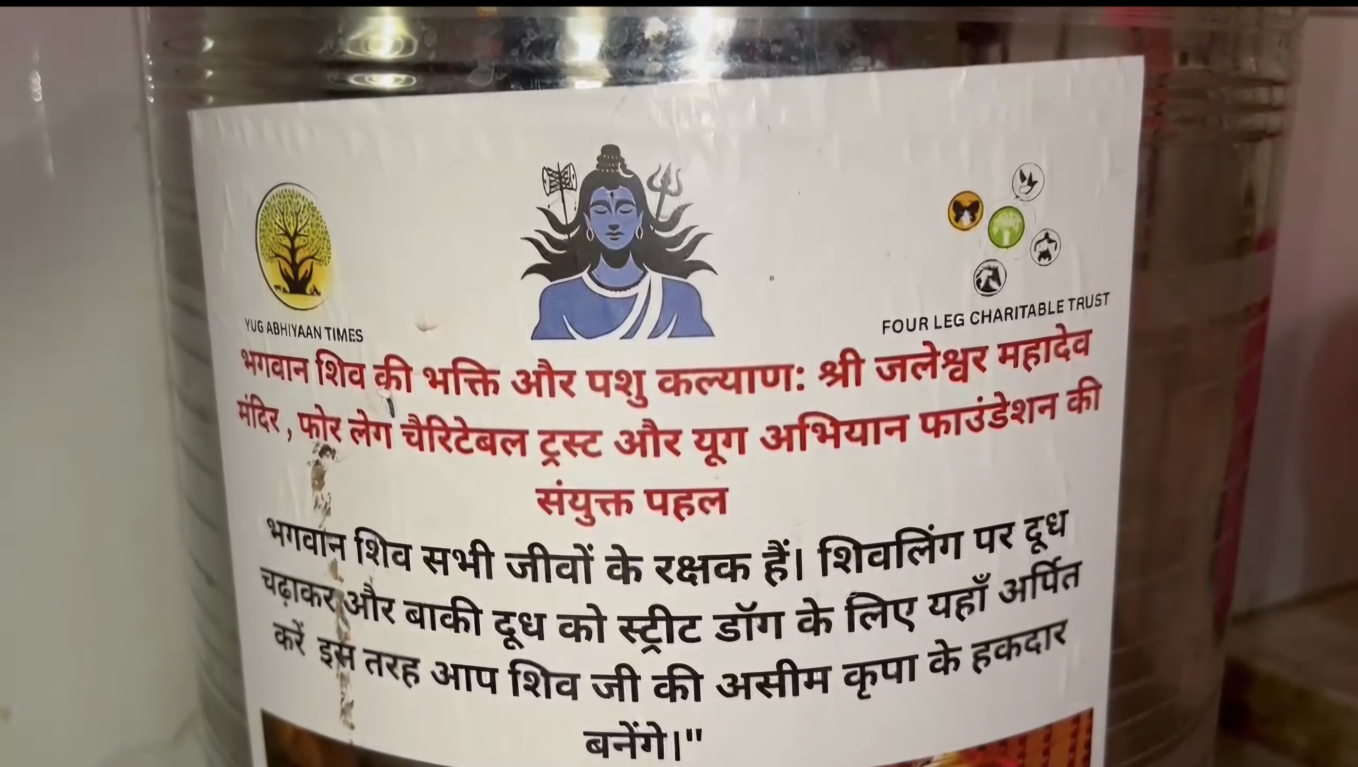 પાત્ર પર લખ્યું છે કે, શિવજીને અર્પણ કરીને દુધનો એક હિસ્સો તેમાં એકત્ર કરવામાં આવે. જેનાથી ભેગું કરેલુ દૂધ રખડતા શ્વાનની આંતરડી ઠારવા માટે ઉપયોગમાં લેવામાં આવશે. લોકોએ આ પ્રયોગમાં ખુબ સારો સહકાર આપ્યો હોવાનું જાણવા મળી રહ્યું છે. સેવાભાવી સંસ્થાના કાર્યકરનું કહેવું છે કે, આમ કરીને તેઓ રોજ 5 લીટર જેટલું દૂધ અને સોમવારના દિવસે 15 લીટર જેટલું દૂધ એકત્ર કરતા હતા. તેમાંથી અત્યાર સુધી સેંકડો રખડતા શ્વાનને જમાડીને તેમની આંતરડી ઠારવામાં આવી છે. મંદિરના મેનેજમેન્ટ દ્વારા પણ જીવદયા માટે કામ કરતી સંસ્થાને પુરતો સહકાર આપવામાં આવ્યો હતો.