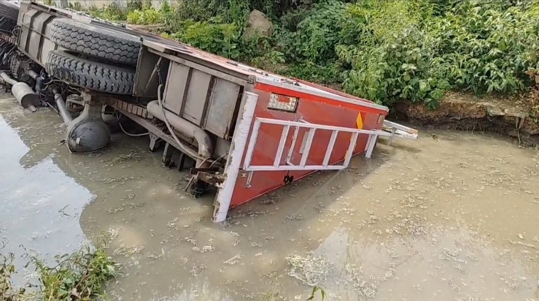 રેસ્ક્યૂ માટે આવેલું ફાયર વાહન ખાડામાં પલટી ગયું